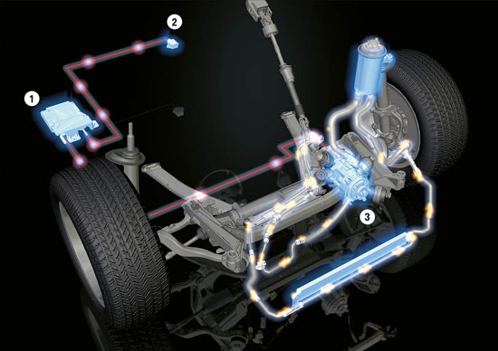 Dynamic Drive系统主要组成部分:1、电控单元 2、位置传感器 3、液压辅助装置