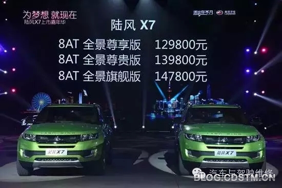 2015-08-18 10:31:522015年8月6日,陆风X7正式宣告上市,本次上市的8AT全景尊享版、8AT全景尊贵版、8AT全景旗舰版三款车型,其售价分别为12.98万元,13.98万元,14.78万元。值得一提的是,仅售12.98万元的尊享版,低价不低配,配置上同样超越期待。