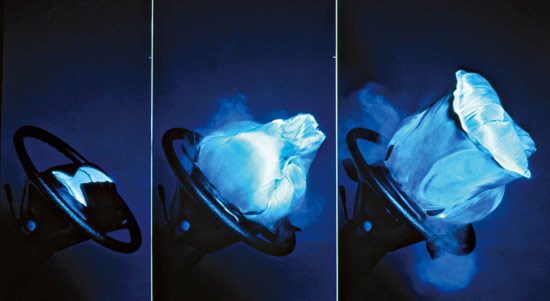 高速拍照记录下SRS安全气囊的充气过程,整个装置可以在十几毫秒内完成