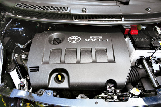 1.6L发动机为雅力士带来高达87kW的最大功率,以及150N?m的最大扭矩,对于能匹配卡罗拉的一款发动机来说,来拖动这款体重仅为1.1吨的“小兄弟”完全绰绰有余。虽然没有得到0~100km/h的官方数据,但以我的感觉,进入10s大关应该不难。虽然4400r/min的最大扭矩转速将雅力士定性为一款中高转速发动机车型,但却并不妨碍低速时的加速,充沛的动力在2000r/min左右时即开始释放,并且源源不断地持续至5000r/min才开始逐渐衰减,而随后的升挡又会使动力进入新一轮的释放。3挡时的车速已经能够达到100km/h,这让我们对于195km/h的最高车速没有抱任何怀疑态度。小车的高速稳定性一直是大家顾虑的,不过雅力士却给大家排除了这样的疑惑。高速状态下的雅力士仍然稳定,特别是RS版本,在提供了扰流侧裙、扰流尾翼以及前后保险杠扰流板的情况下,高速行驶状态更上升一个台阶。5挡手动变速器的换挡感觉非常轻巧,甚至已经具备了德系车的弹性表现,我们甚至可以练成“二指禅”。轻松的换挡动作会让雅力士1.6L发动机的强大动力更加完美地释放。不过我们仍然需要注意一点,手动挡车型的雅力士虽然油门踏板和制动踏板表现得都非常轻巧,但是离合器踏板稍长的自由行程还是在一定程度上延长驾驶者的适应过程,对于加速的连续性也会带来一定的阻碍。