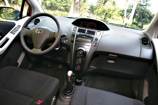 能够被丰田称为有史以来在欧洲市场获得最大成功的车型,这在小车遍地跑的欧洲市场十分难能可贵,对于操控性能“偏执狂”似的强调让一向注重舒适度的丰田车型很难迎合欧洲人的口味,更何况是一款A0级的小车。但是雅力士的表现却有些出乎意料,动力和悬架的运动化改变让它能够迅速地“混迹于欧洲”,挑剔的欧洲人似乎已经帮我选中了此次试驾的对象——1.6RSMT运动版。雅力士对于操控性能的诠释从我们进入车内的一刹那已经开始,黑色的内饰足以带来视觉上的强烈冲击。此时此刻,真皮座椅已经不能够成为小车炫耀的资本,取而代之的是更加切合时宜的运动型织物座椅。雅力士的黑色运动型织物座椅并不仅仅满足于视觉上的“酷”,并且在触觉上为我的腰部提供了更加体贴的保护。