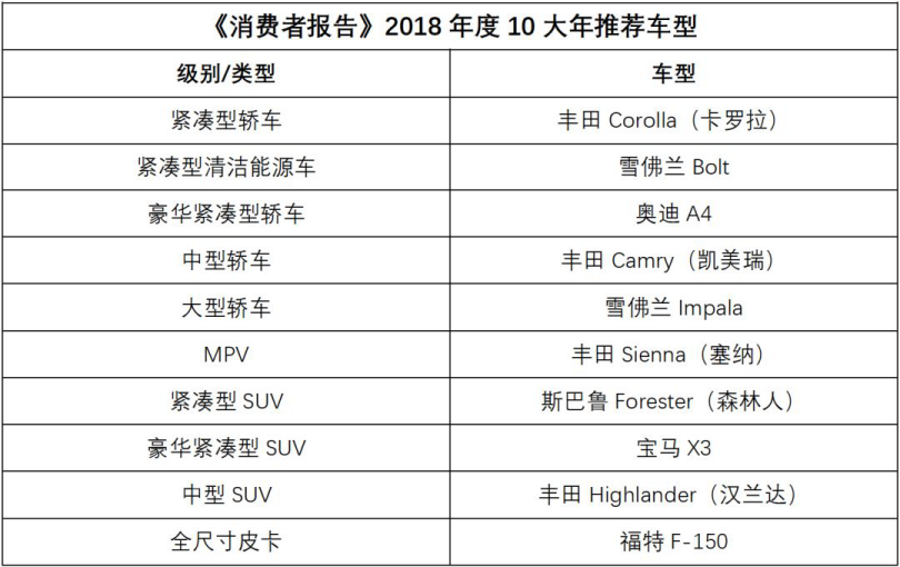 经过极其严苛的测试和评估,美国权威媒体向消费者推荐了这10款车,其中8款国内有售