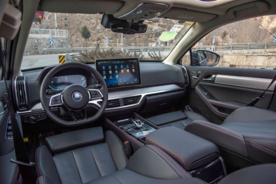 颇具互联网时代风格的内饰。将外观设计交给外来的和尚后,比亚迪的理工宅们将无处发泄的灵感洪流倾泄到了内饰中——乍一看仿佛是将一台巨型手机硬生生插到了中控台上,不过这也使原本繁杂凌乱的中控仪表彻底得到了解放:仅需点控这一片大屏、或是干脆进行语音输入,系统自会帮你进行功能切换,也算省事不少。