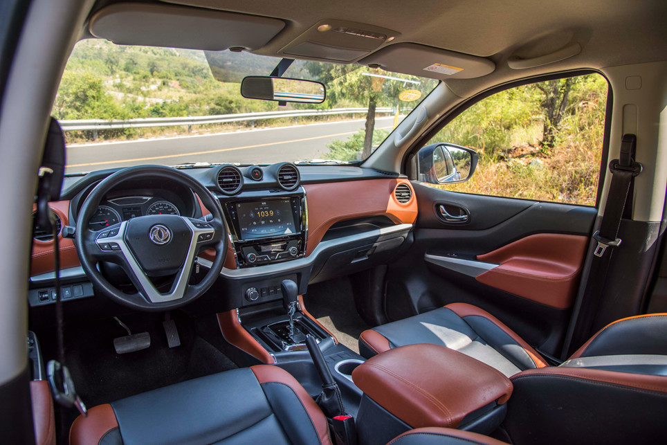 内饰设计同样遗留着入门级皮卡的普遍性问题。其设计算不上有特点,内饰用料采用了全硬塑料材质,不过即使如此,锐骐6还是想办法在中控台上印出了类似真皮缝线式的假造型,用以提升视觉质感。