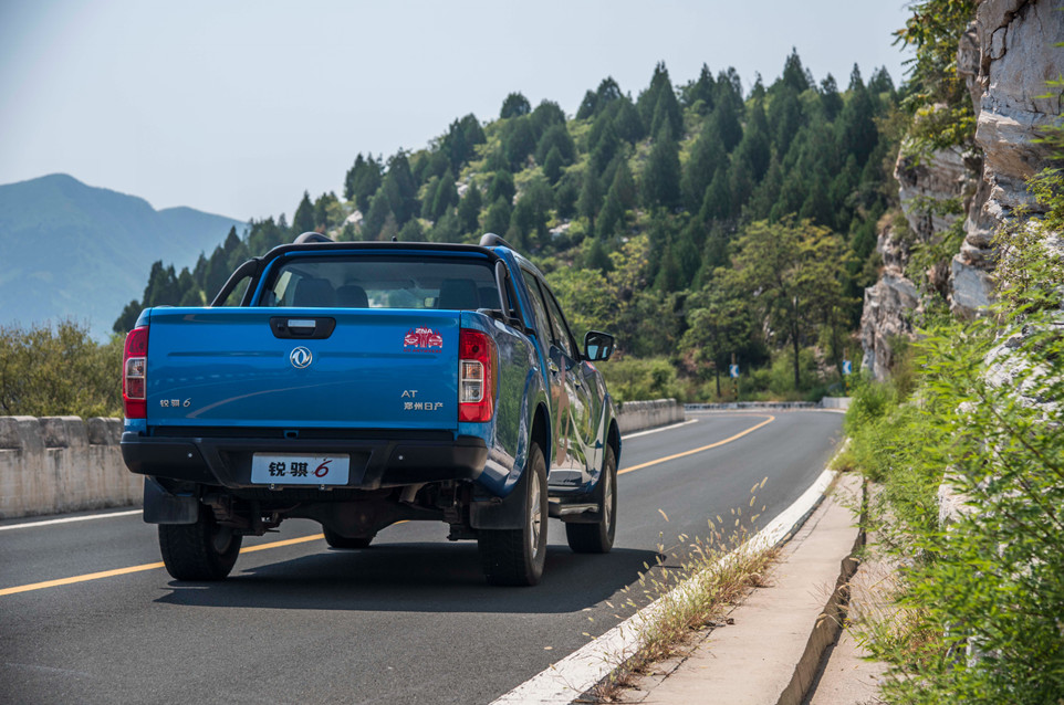 2.5 T+6AT的动力组合并没有给人急不可耐的冲劲,而与之相反,其从始至终都保持着非常线性的加速感受;转向手感与其它皮卡车型类似,指向性模糊、圈数大,但惊喜之处在于力度很轻,不需要太大的力气也能轻松转动锐骐6的这套液压助力转向;前悬的悬架行程较长,在铺装路面上经过较大角度弯道时会给人悬架很软的错觉,其实不然,锐骐6在连续颠簸路面上的振动反馈是非常敏感直接的,尤其对于后排乘客来说,但在颠簸中锐骐6也并未出现任何松散的杂音,这说明其NVH确实有做过一定加强。