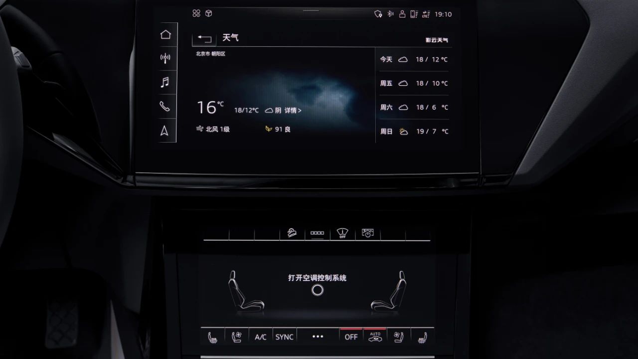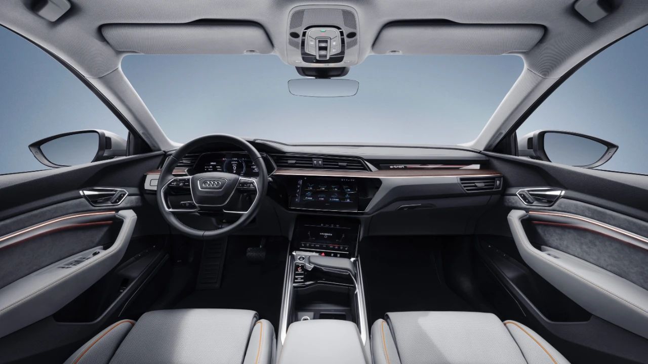 内饰设计同样延续了奥迪最新的家族设计风格。向驾驶员一侧微微倾斜的双层分体式MMI触控中控屏与12.3英寸奥迪专属虚拟座舱,打造奥迪e-tron专属环抱式智能驾驶体验。