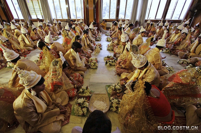 一场像样的印度婚礼,要为不同的时刻准备不同的衣服,所以通常需要几套礼服。由于经济不景气,如今孩子一出生,母亲就得开始为她将来的婚礼做准备了。而对设计师来说这也是好事,塔希里安尼设计的婚纱的起价从6000美元已经飙升到9万美元。