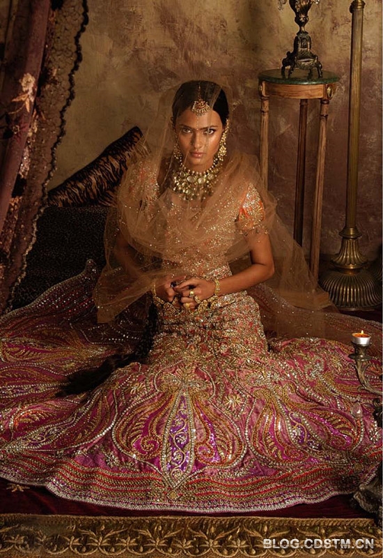 所以在世界人口第二大国的印度,人们在衣服上花的最多的钱,投入的主要注意力和设计心血都集中在一个人一生中的特定时刻:那场盛大的奢华的婚礼。印度次大陆的服装设计师或多或少都设计结婚礼服,实际上,新娘礼服占了印度时尚工业80%的产值。