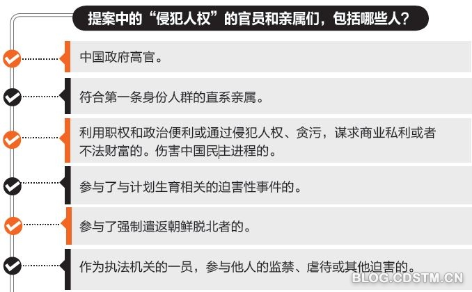 这个提案在最后大义凛然地总结:“通过拒绝有此行为的中国公职人员入境,我们可以帮助中国的爱国人士终止这一现状。这项立法要传达的信息就是,这些在中国境内不被排查的官员,到了国际社会不会被忽略。”