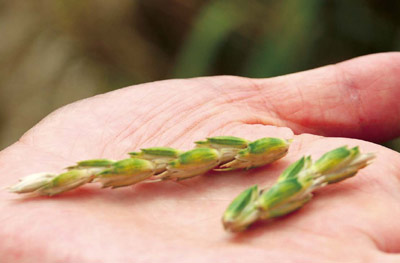 斯卑尔托小麦穗轴易断。只需轻轻一搓,就成了手中的两截