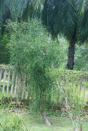 科学家们的研究报道更为引人关注,他们指出,光棍树枝条内部富含的白色浆汁更是神奇。一旦小枝条被折断,浆汁可迅速涌出结膜从而避免体内的水分过度散失;而且浆汁中的毒害作用还能有效地抵抗动物的侵袭起到保护植株的作用。此外,科学家们还从白色浆汁出提炼出了石油的主要成分——烃类物质。如今,光棍树已成为世界范围内广受重视的可再生、绿色环保的优良生物能源,有望在不久的将来造福人类。a