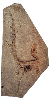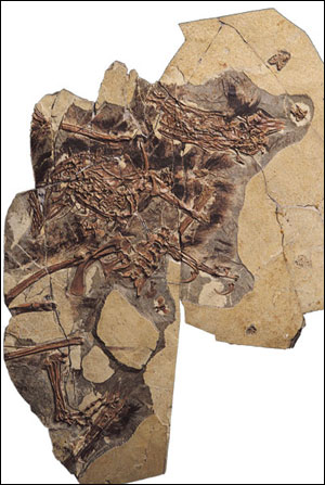 1996年发现的中华龙鸟化石显示,这种长着原始羽毛的动物并不属于鸟类,而是一种典型的小型兽脚类恐龙