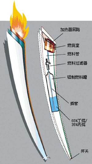 今天人类社会使用能量的90%以上仍来自燃烧。不管奥运圣火如何“神圣”,要在地球上燃烧就必须满足三个要素。那便是燃料、助燃剂和温度,人称“火三角”。历届奥运会曾经使用过火药、硫磺、树脂、萘、橄榄油、四氮六甲圜做火炬的燃料,柏林、伦敦、墨尔本奥运会进入主体育场的火炬燃料都选择了金属镁,虽然能发出炫目的光辉,但火星四溅烫伤运动员手臂的场面敦促着人们对火炬加以改进。1972年慕尼黑奥运会首次将24%丙烷和76%丁烷压缩成液态装在罐中做火炬燃料,此后液化气成了奥运火炬的上选。