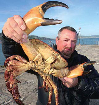 据英国媒体报道,近日,潜水员保罗·沃斯利在英国多塞特海岸林梅湾潜水时发现了一只迄今为止人类见到的最大的螃蟹。这只螃蟹的螯竟有成年人手掌般大小,看上去十分吓人。