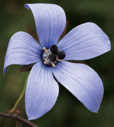 图1,桔梗科草质藤本植物珠子参的花,摄于云南香格里拉。花冠紫蓝色,花大而美,在园艺中将大有作为。不过,目前为止未见植物园栽种。云南丽江玉湖、中甸纳帕海山边、泸沽湖沿岸有很多。值得注意的是花冠具有5次旋转对称性(也称辐射对称性),而柱头本身为3次旋转对称。这里根据《中国植物志》定名“珠子参”。《中国高等植物图鉴》称此植物为“大金线吊葫芦、鸡腰参、甜鸡露”。