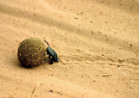 蜣螂,即我们常说的屎壳郎,不要觉得它们很恶心呀。正是它们,将粪便制成球状,滚动到可靠的地方藏起来,然后再慢慢吃掉,才让大自然变得更加干净,所以它们也有“自然界清道夫”的称号。