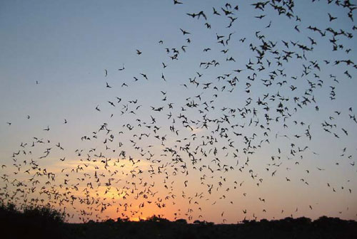 成千上万的巴西犬吻蝠形成空中一道壮丽的奇观