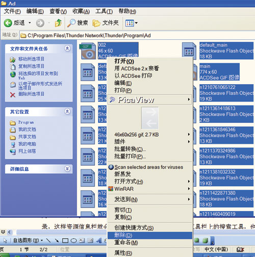 步骤1:进入迅雷的安装目录,再进入“Program”子目录(如图2)。用“记事本”打开该目录下的“adhistory.xml”文件,并删除文件里的全部内容(如图3),然后保存。
