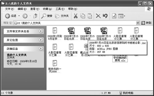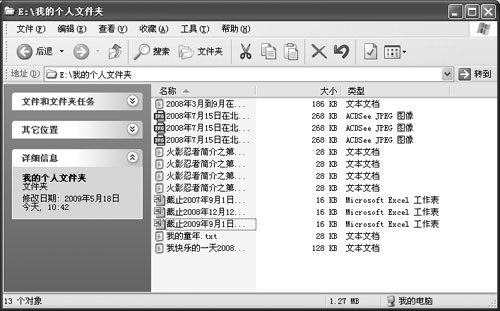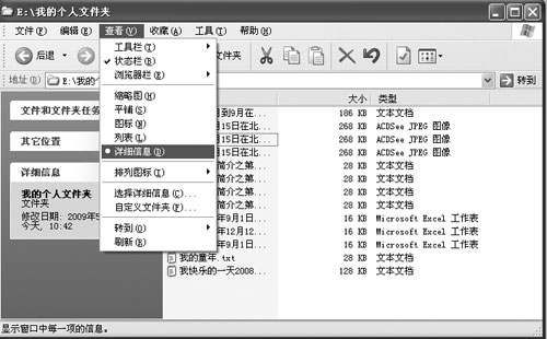 打开要查看的文件夹,单击菜单栏中的[查看]→[详细信息],以“详细信息”方式显示文件(如图3)。