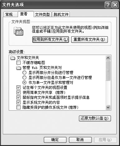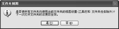 单击[工具]→[文件夹选项],在打开的“文件夹选项”对话框中选择[查看],在“文件夹视图”项中单击[应用到所有文件夹](如图5),在出现的“是否使所有文件夹均使用当前文件夹的视图设置(工具栏和文件夹任务除外?)”提示框中单击[是](如图6),最后单击[确定]。