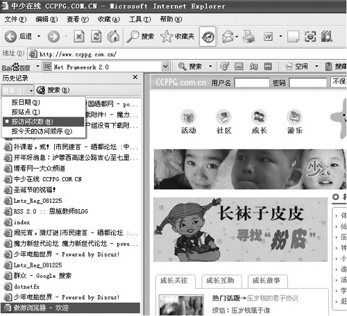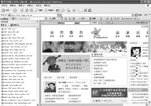 打开IE浏览器,在快捷工具栏中单击[历史],会在浏览器的侧边栏中出现曾经浏览过的网址(如图1)。
