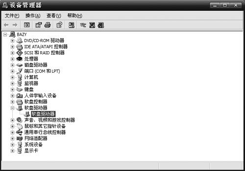 在弹出的“设备管理器”窗口中,选取[软盘驱动器]→[软盘驱动器](如图3)。