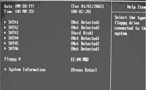 小贴士:不同厂家或不同型号的主板BIOS程序界面有所不同,但设置方法都大同小异,例如有的是[DriverA],后方需设置成[None]。