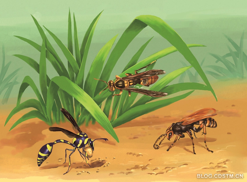 可是夏天一到,眼前只剩下一片荒芜,划根火柴就能造成满园大火。可这里是蜂类的天堂。这些长势茂盛的多刺植物,把周围的蜂类都吸引过来。从没有谁能指望在一个地点找到如此众多的膜翅目种类。它们当中有捕食活虫的猎人,有利用湿土造巢的砖瓦匠,有梳理绒絮的裁缝,有给木头钻眼的木工,有打地道的矿工……