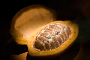 巧克力是用可可浆和可可脂制成的一种甜食,主原料是种在中南美洲的可可树上结的可可豆,可可豆发酵过程会产生酸味,而酸味正是影响巧克力香气的关键,高品质巧克力闻起来有一股自然的清香。可可豆经过发酵、烘烤、去皮等处理之后,被研磨压榨成“可可浆”,再被加工成可可脂。可可脂其实是一种植物油,油的熔点主要由饱和脂肪的含量决定。可可脂因为饱和脂肪含量高,熔点在34摄氏度~38摄氏度之间。这使得它可以在常温下是固体,吃到嘴里却融化,即所谓的“只融在口,不融在手”。