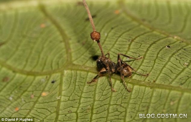 一只可怜的蚂蚁生病了,它被一种叫作“偏侧蛇虫草菌”的真菌感染了。最后,蚂蚁独自离开蚁群,爬上一棵大树,咬住小枝或树叶的下方,孤寂地死去。以这种姿势死去的蚂蚁能够使真菌孢子掉落地面,继而感染更多的同胞……听起来,这好像是一只不为同胞着想的坏蚂蚁?其实,它并不是自己决定这样做的,真相是它被真菌控制了!