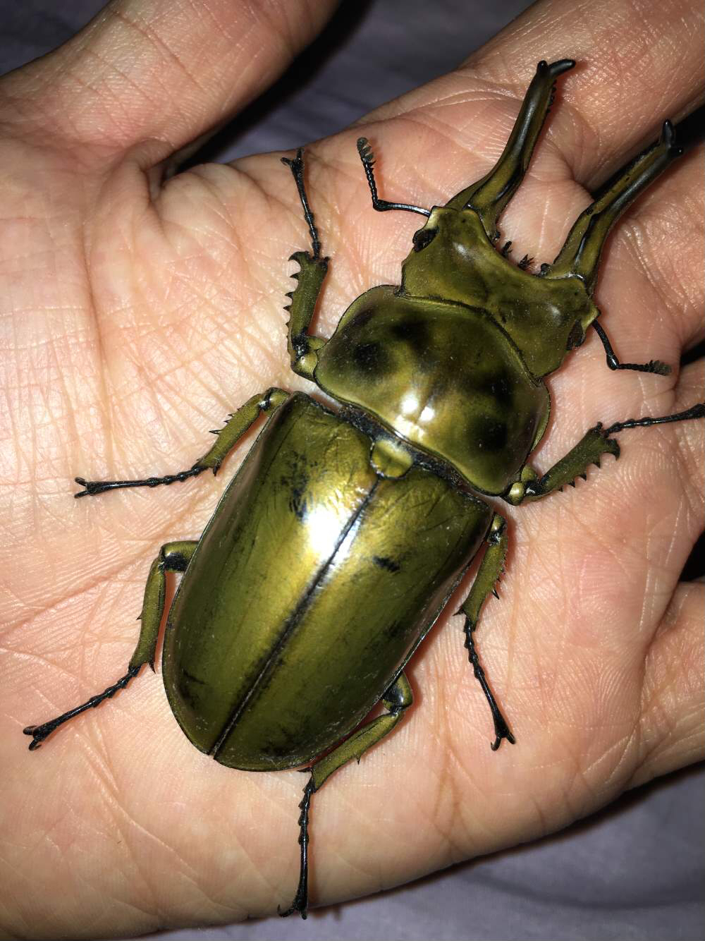 首先,它们有巨大的身躯,霸气十足。虽然也有小巧精致的甲虫种类,但总体而言,相较于蜜蜂、蛐蛐这样的昆虫,甲虫巨大的身躯往往在第一次现身时就给人强烈的视觉冲击。其次,它们有特殊的形态,不仅个儿大,雄性甲虫还拥有角和长牙。多变的形态甚至让我仅仅在见到它们的照片时,就一度怀疑有些甲虫是否真实存在。直到亲眼见到它们本尊,我才相信这个事实。