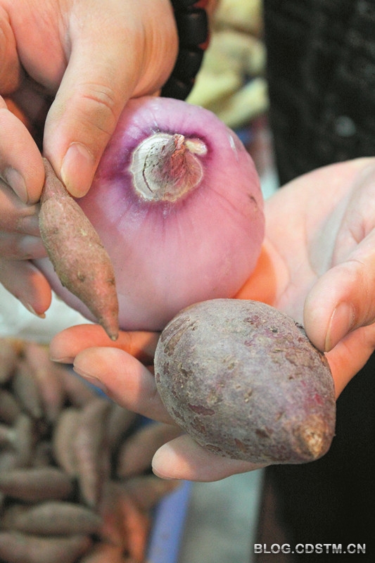 李强在武康菜场里找到了产自甘肃的小红薯,拇指粗细,有着紫红色的表皮,是很好的抗癌食品。要挑细小的,不能有一点点坏掉的地方,否则有害物质会“污染”整个小红薯。