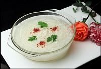 其实,这是个熟典。乾隆南巡,来到天宁寺, 吃了文思和尚的豆腐汤大为赞赏,将豆腐列为贡品,文思和尚也以菜扬名了。我在上海洁而精川菜馆(其实是川扬帮菜)吃过“小李飞刀”(厨师名李红)将一盒内酯豆腐切成1.5 万根细丝后烹成的“文思豆腐”,汤鲜、豆腐嫩,十分可口。