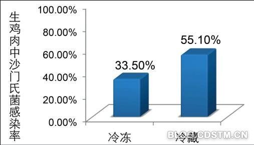 约95%的沙门氏菌感染源于食物污染,其中畜禽肉是沙门氏菌最喜欢的食物。根据各国的数据显示,零售生鸡肉中沙门氏菌的污染率最高可达80%。2011年~2013年,国家食品安全风险评估中心对我国的情况做了摸底调查,结果显示,污染率在40%左右,其中夏季(5月~8月)的污染率最高。