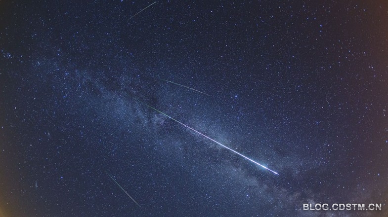 对于热爱流星雨观测的朋友们来说,八月份的英仙座流星雨是一定不能错过的,这是北半球夏季最为精彩的一场流星雨,可以看到明亮的流星游走于银河之中。德国的一位摄影师在威克斯海姆拍到了这幅银河伴英仙座流星雨的影像。画面中,清晰可见的流星有六颗,皆从英仙座的辐射点射出。居中的那颗火流星几乎和银河走向一致,如同在银河铁道上奔走的列车。