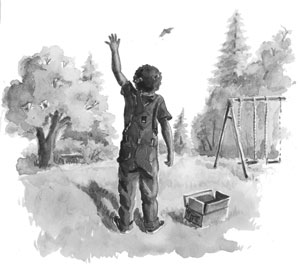 现在你一定想知道,有颜色的光是如何变成热量的。那么你就把太阳想象成一个小丑吧。这个小丑不停地往四下里抛掷红色、黄色、绿色以及其他颜色的球——科学家称这些球为光子。你再想象现有的一切事物,比如花、小汽车、衣服或你的皮肤等等,这些事物上充满了小小的跷跷板。每一个跷跷板的一边是空的,另一边则放着一个球状物体——科学家称它们为电子。这样,小丑把一个球,也就是一个光子,抛向跷跷板的空的一边,那么,所有的球状物体,即电子,就会跳向空中。每当一个电子掉下来时,它总要在空中产生一点儿热量。这样,有颜色的光就变成了热能,你也就感觉到了阳光的温暖。