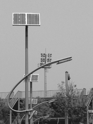 除了“风力海鸥”,草坪灯像一颗颗晶莹剔透的珍珠镶嵌在绿茵中;太阳能车位线指示灯,安装时不需要布线,只要把它埋在需要的位置,夜间就能亮起来,提示停车位置;太阳能信息灯,不但提供照明,还能接收手机发出的短信息,并显示在灯体显示屏上,以方便管理者发布一些重要信息……北京奥运场馆,俨然成了世界上最先进绿色能源的示范区。
