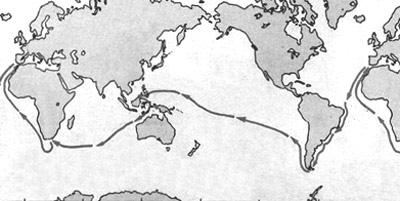 他的前一段航行非常顺利,沿着哥伦布的航路,一路平平安安就越过了大西洋,到达了彼岸的新大陆。可是下一段航程充满了未知因素,就非常困难了。新大陆好像是一道长长的高墙横卧在面前,再也不能前进一步了。他必须寻找一条新的道路,想办法绕过这个辽阔的大陆,才能进入传说中的“南海”,经过印度洋返回欧洲,完成环绕地球的使命。