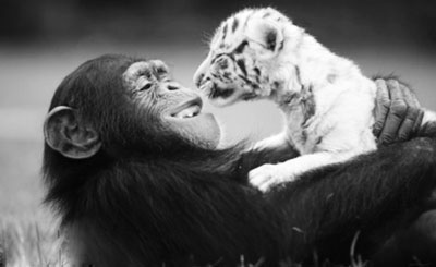 2008年8月,白老虎米特拉和希瓦出生了。由于一些原因,两个小家伙不得不和自己的母亲分开,来到位于南卡罗来纳州的稀有及濒临绝种生物协会生活,并由饲养员秦娜照顾它们。然而,在稀有及濒临绝种生物协会里,有数百个动物需要秦娜的关怀,谁来给米特拉和希瓦更多的母爱呢?安佳拉,这只两岁的黑猩猩,现在是它们的新妈妈啦。