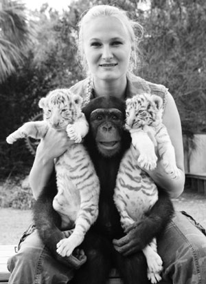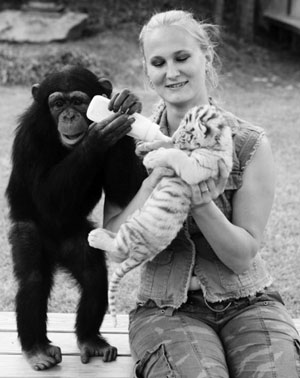安佳拉一出生就由秦娜照顾,他们亲密无间,从不分离。安佳拉总是不断模仿秦娜,学习她怎样照顾小动物。它真是个优秀的妈妈,先后照顾过美洲豹、狮子和猩猩。甚至完成了抚养4只狮子的艰巨任务。