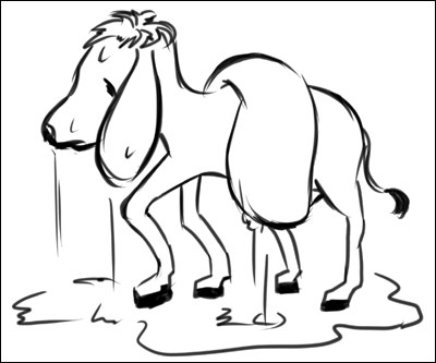 可怜的驴子背着几袋沉甸甸的盐,累得呼呼直喘气。突然,眼前出现了一条小河,驴子走到河边冲了冲脸,喝了两口水,这才觉得有了力气。它准备过河了,河水清澈见底,河床上形状各异的鹅卵石光光的,看得清清楚楚。驴子只顾欣赏美景,一不留神儿蹄子一滑,摔倒在小河里,好在河水不深,驴子赶紧站了起来。奇怪!它觉得背上的分量轻了不少,走起来再也不感到吃力了。