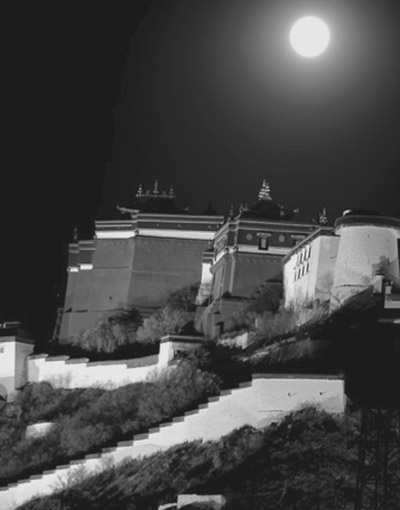 2009年2月9日拍摄的布达拉宫上空的皓月