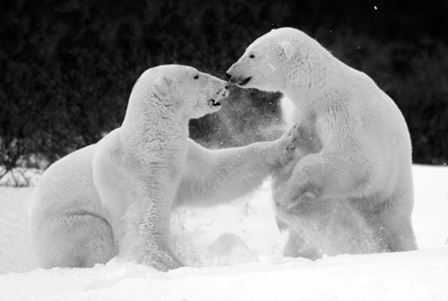 蒂姆·雷德福:北极熊有非常完美的皮毛,隔热保存身体的热量。北极熊还有冬眠的能力,可以6个月完全不需要任何食物。我们人类就不一样,人类即使什么也不干的话,大脑要消耗的能量也是我们每天所摄入能量的五分之一,由于人类有这么多热量的消耗,要保持生存就要借用其他物种提供的东西,比如说我们砍树来造我们居住的房子;我们还会储存食物;除此之外,我们还使用机械。我非常诚恳地承认我们人类在进行我们的生产生活的同时,也向自然界排放了大量的碳。