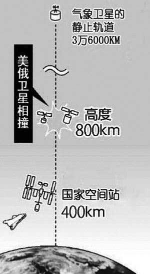 2009年2月,当国际天文年的主题活动“探索我们的宇宙”在世界各地陆续开展时,北京时间11日0时55分(美国东部时间10日上午11时55分),美国1997年发射的一颗卫星(铱33通信卫星)与俄罗斯一颗1993年发射的、现已报废的“宇宙2251”军用通信卫星相撞,地点位于西伯利亚上空约800公里处。这是历史上首次卫星相撞事故,相撞产生大量的太空碎片。