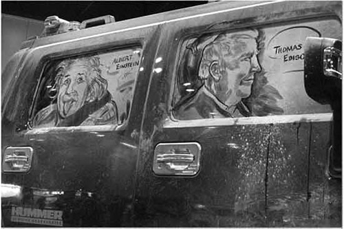 号外号外,脏车再也不用急着去洗啦。艺术家在满是灰尘的脏车上画出了精美绝伦的画。大家快来看啦!