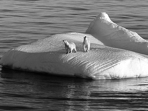 冰川消融:从这张图里我们真实感受到了北极熊的哀号。随着全球变暖,北极冰川正以惊人的速度融化。2007年夏天,北极冰川覆盖率已降到了历史最低点。而到2009年底这一记录将有可能再次被打破。科学家预测,到2050年,世界上将有2/3的北极熊死亡。同时,冰川融化后,海平面升高,全球将有3000多个城市被淹没。
