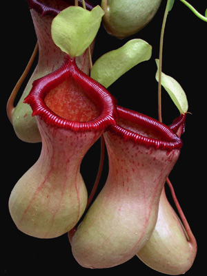2009-05-17 17:15:01在千姿百态的植物世界中,神奇的食虫植物特别引人注目。而猪笼草作为热带食虫植物的代表,更是备受人们的喜爱。它那美丽独特、自然下垂的“叶笼”千变万化,有的像小酒杯,有的像罐子,有的像竹筒,颜色更是五彩缤纷,不仅有极高的观赏价值,还能起到消灭(吃)蚊蝇的作用呢。