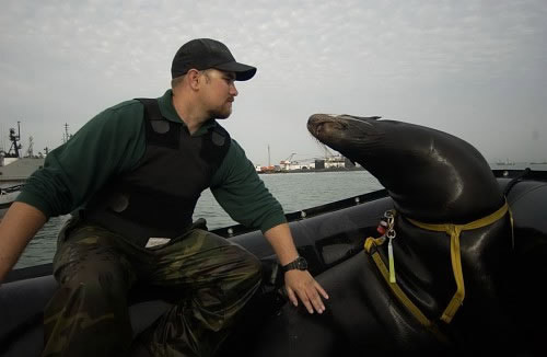 有一次,为了显示海洋动物特工队的威力,美军曾邀请欧盟军事访问团来观看海狮士兵的演习。演习开始了,只听“扑通”一声,一名假扮间谍的美军士兵跳下海,准备对军港进行侦察。这名“间谍”游到距离舰船还有2000多米时,嘴里叼着绳套的海狮便扑了上去,它敏捷地把绳索牢牢地套在“间谍”的大腿上,并迅速缠绕,很快就制服了“间谍”。之后,海狮跃出水面向附近巡逻的快艇发出信号。巡逻艇立刻赶到,“间谍”只好束手就擒。