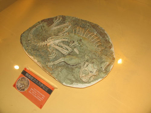 2009-12-21 21:50:16 就在达科他忙着纠正人类对恐龙的错误看法时,2008年,一个鹦鹉嘴龙“木乃伊”也急急忙忙地从我国辽宁西部出土了。这会儿,它正坐在北京自然博物馆“恐龙木乃伊”展的大厅里值班呢。