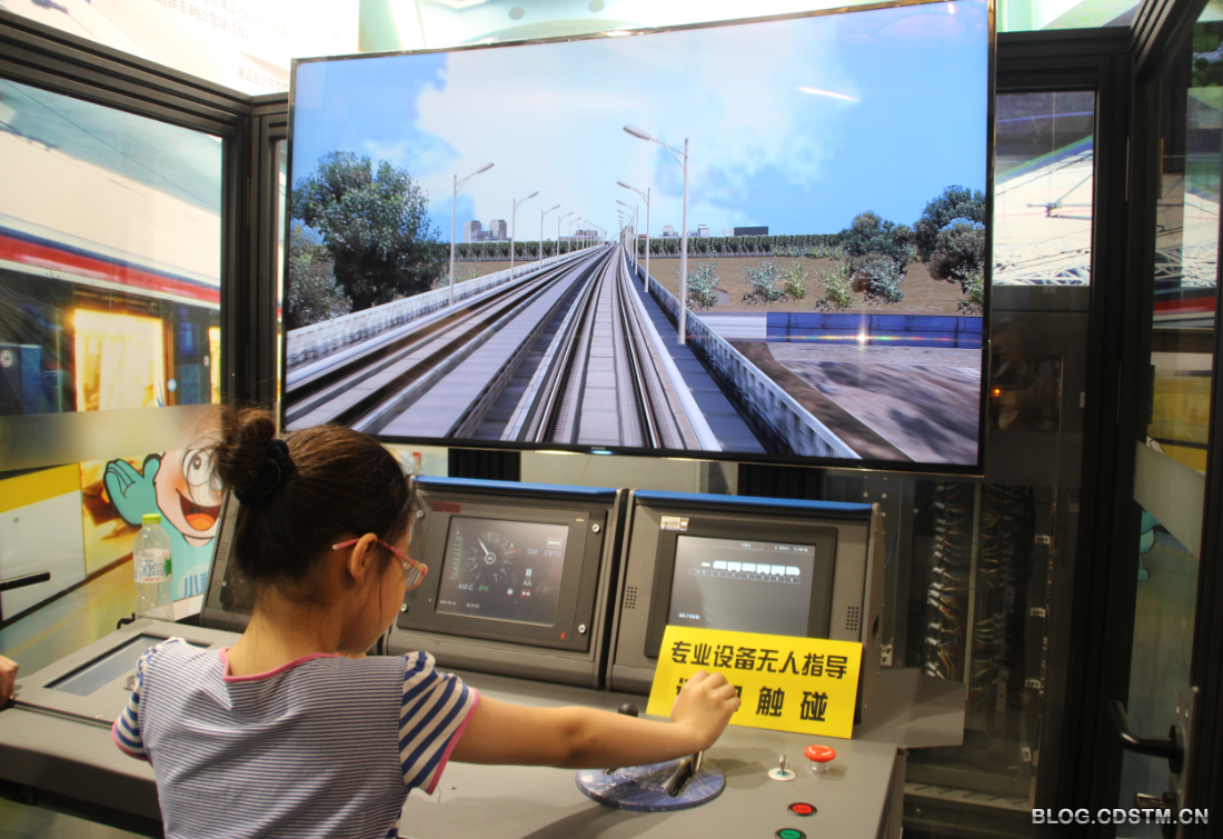 此刻,嘟嘟正在体验的是“地铁模拟操作系统”。这个系统结合动画视频,展现了地铁运行的基本原理和工作流程。整个驾驶舱配备了完整的操作设备,让观众可以真实体验驾驶地铁的过程。